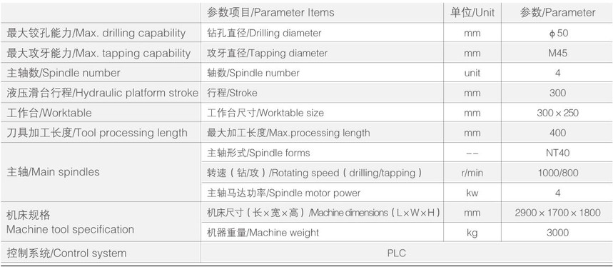 技術(shu)亮點 Technical highlights : 1、 采用(yong)液壓/伺服(fu)滑台,加(jia)工尺寸(cun)精準,定(ding)位速度(du)快。 Adopt hydraulic/servo slide table, precise processing size and fast positioning speed. 2、 采用PLC可編(bian)控制器(qi),反應靈(ling)敏,操作(zuo)方便。 Adopt PLC programmable controller, which is responsive and easy to operate. 3、 液(ye)壓系統(tong)采用精(jing)密電磁(ci)控制閥(fa),調壓方(fang)便,油缸(gang)進給平(ping)穩,行程(cheng)可調,安(an)裝尺寸(cun)統一,互(hu)換性佳(jia)。 The hydraulic system adopts precise electromagnetic control valve, which is convenient for pressure regulation, stable feeding of oil cylinder, adjustable stroke, uniform installation size and good interchangeability.